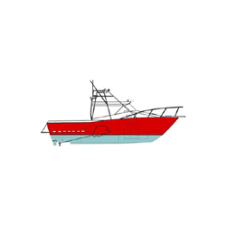 A design for the serious off shore sports fisherman. Preferred motors 2 X 180 hp Cummins 6BT or Yanmar 4LH-STE. Will give a speed of 25 knots plus, depending on loading. The design follows the current USA development of what is called the "Express Sports Fisherman". A great fishing cockpit, good backing up ability, comfortable day or overnight accommodation, all in an excellent seakeeping hull. Accommodation is two vee berths forward with galley on one side and shower toilet space on the other side. All hull materials are readily available 5083 plate or 6061 extrusions. Where 6051 flat bar extrusions are not readily available these are easily cut from 5083 plate. STUDY PLAN AVAILABLE - CLICK HERE |
