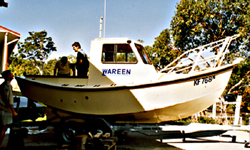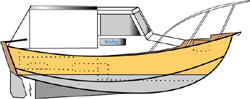 Can be either Aluminium or timber ply. Great first boat to built. Open fishing or makerel fishing version available. Easy to build. Plans detail building jig. Has tubular stem, chines and sheer bar. Built inverted on jig. 3mm plating on 50 x 6mm flat bar frames. Fully detailed engineering plans. Excellent seakeeping shape, very safe and dry boat. This boat has real character. Always draws comments.