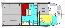 A 9 metre steel power catamaran for long distance economical cruising. The alternative way of spacious live a board cruising under power. Also available in aluminium construction and a 4 stroke outboard version in steel or aluminium. An exceptional design. There is nothing else like this seagoing cat on the internet Steel, or steel extended version , also aluminium construction with extended cabin and flybridge Single chine catamaran Hull tunnel to waterline is 300mm loaded and 370mm light Propeller dia 400mm. Fresh water 200 litres. Sewage tank 60 litres. Intended for living aboard for extended periods in the Med. where provisions are available on a weekly basis. This craft was designed so that all nominated fitting out items including tanks etc. were available from the Vertus catalogue, which is readily available world wide. Accommodation is two double berths forward, galley and dinette in wheelhouse saloon. The cockpit is relatively large and is ideal for relaxing outdoors. The shower/toilet space is unusual in that the toiler is located at a lower level on one side and the shower on the starboard side. There is internal entry to each of the machinery spaces with larger maintenance hatched in the cockpit. Sub division with bulkheads make this a very safe boat. The engines shown in the plan are 60hp Dutz as shown in the Vertus catalogue At first we thought that a 9 metre steel catamaran would not be practical. A preliminary design established that providing it was built in 3mm plate,with fabricated frames and tunnel beams,a satisfactory design was possible. The hulls are deep to carry the additional weight and the craft is designed to run at displacement speed with initial estimates indicating a top speed of 14 knots and a very economical cruising speed of 10 knots. Particular attention has been given to the machinery installation with the hull aft designed to accommodate the propellers, reduce draught and enable the catamaran to sit on the bottom. The original craft was designed in 2002 for use cruising the Greek islands.