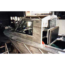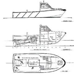Bollard series 124. Beam 2.8 metres. Displacement 3.25 tonnes. Speed to 24 knots with 250hp diesel. Designed as an Aluminium work boat for a shipping and tug boat company. The vessel has a good turn of speed, reasonable towing power and good manoeuvrability. Original vessels fitted with GM V6-53N rated 180 hp which gave a speed of 22 knots carrying 2 crew. Fendering at bow see photo. Tough work boat for any use. |