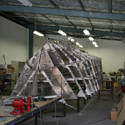 Aluminium stock plan 10.5 metres (34'6"). Beam 3.28 metres (10'9"). Displacement approximately 8 tonnes. 6mm plating. Accommodation for 6 persons. Steel variations of this hull shape are Tilba, a displacement speed cruiser designed for two people plus casual guests Dajarra in steel. A semi displacement speed cruiser with lots of family accommodation Mingela in steel. A semi displacement cruiser with a large fishing cockpit Heka in steel. A fast fishing boat with minimal accommodation.