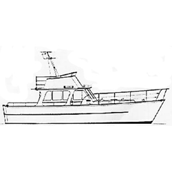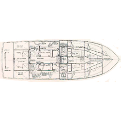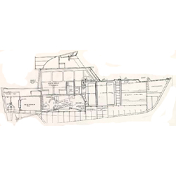Hard chine stylish cruiser. Length 13.55 metres (44'6") Beam 4.2 metres (15'2") Displacement loaded 22 tonnes. Plating 5mm (3/16"). Steel weight approx. 12 tonnes. Plan shows accommodation berths for 8 persons. Power twin 270 hp diesels. Speed at continual RPM approximately 12 knots. Range 575 nautical miles approximately. Accommodation can be rearranged to suit owners requirements Hull 5mm plating. Wheelhouse aluminium. Fresh water 400 litres. Standard accommodation is for dive charter with 8 permanent berths in four cabins. Large wheelhouse, galley and dinette. Big cockpit. Accommodation forward cab be easily rearranged Top hull shape for semi displacement speed range. Capable of taking more power. A real passagemaker suitable for long distance offshore cruising. This really is a top hull shape for the displacement speed range to 14 knots. Higher speed could only be achieved by building hull in aluminium. Speeds to 25 knots possible with much larger motors, but cost effectiveness of this is questioned for other than short distance cruising in relatively smooth water and good conditions offshore.