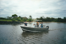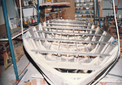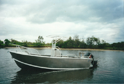 An excellent and smart looking family or fishing boat. Albatross Mk 2 can be built as a centre console, or cuddy cabin with an outboard well or full or half pod. Length is 5.27 metres (17'4"). Beam 2.13 metres (7'0"). Weight about 750 kg making it ideal for towing behind a 6 cylinder family car. Aluminuim weight about 400 kg. Simplified method of construction with flat bar frames, tubular keel, stem and chines and 3mm plating. Single 85hp or twin 45hp outboard motors. Ideal for first time builders. STUDY PLAN AVAILABLE - CLICK HERE |