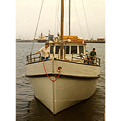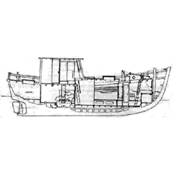 Single chine 12.6 (41') timber trawler type charter boat or long distance passagemaker. Single engine. Photograph shows charter boat version that operates out of Sydney Harbour. I can set my watch by the time it comes in every Saturday afternoon about 1400 E.S.T. Standard hull shape. Most builders modify the cabin to suit their own taste and requirements A steel version, single or double chine is available in options, trawler yacht, or Pacific Island utility craft. Auxulary sail option (18.6 sq.M) Sleeps 4 in 2 cabins as drawn. Galley and toilet space in wheelhouse. Fresh water 900 litres. Hold capacity 180 cub foot. Can be used for workshop or additional accommodation. Full heaqdroom. Planking 37mm (1 1/2 inch). Can be plywood (two layers epoxy bonded). Where can you find fully detailed plans for a proven craft such as this. PDF has lots of photographs of craft building and more detailed information including material list |