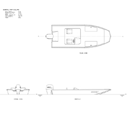 A 5.4 metre high performance aluminium Bass Boat recommended for sheltered water use. Tough 4mm plate hull is easily constructed using fully detailed plans and 3D CAD model A very practical boat, with 7 degrees deadrise on bottom. Ideally suited to bass fishing and general pleasure use in sheltered waterways. Craft has recessed cockpit and seating for two with console on starboard side. There is ample space on the fore and aft decks for chairs, locker etc and there is plenty of room for an electic trolling motor up forward. A very stable design which can be fully customised to suit the owner.