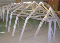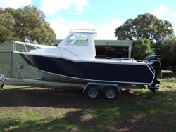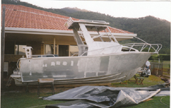 Available in 6, 6.5 and 7 metre lengths on a 2.45m beam, this is a top boat with over 350 having been built around the world. The length of the craft is altered by fitting additional frames, not by changing the frame spacing. This is the original targa top version. The targa can be hinged down to reduce windage when towing or to get under low carports and garages. Built using the "One logical step after another" method this boat has proven to be one of the best stock plan Alloy boats available. You will not find a better one